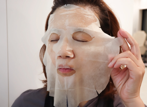 ラップとマスクをはずし、全体を軽くパッティングをしてなじませます。最後に冷やした濡れタオルをお顔全体にのせて時間を置き、クールダウンしたら完了です!